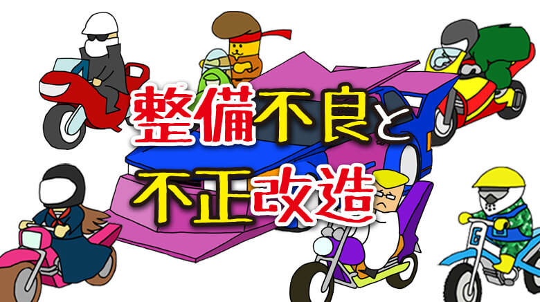 整備不良は車両の装置が保安基準に適合しないために交通の危険や迷惑を引き起こす可能性がある状態です。 不正改造は車両に改造や装置の取付などによって、保安基準に適合しなくなることを意図的に行う行為です。 どちら…
